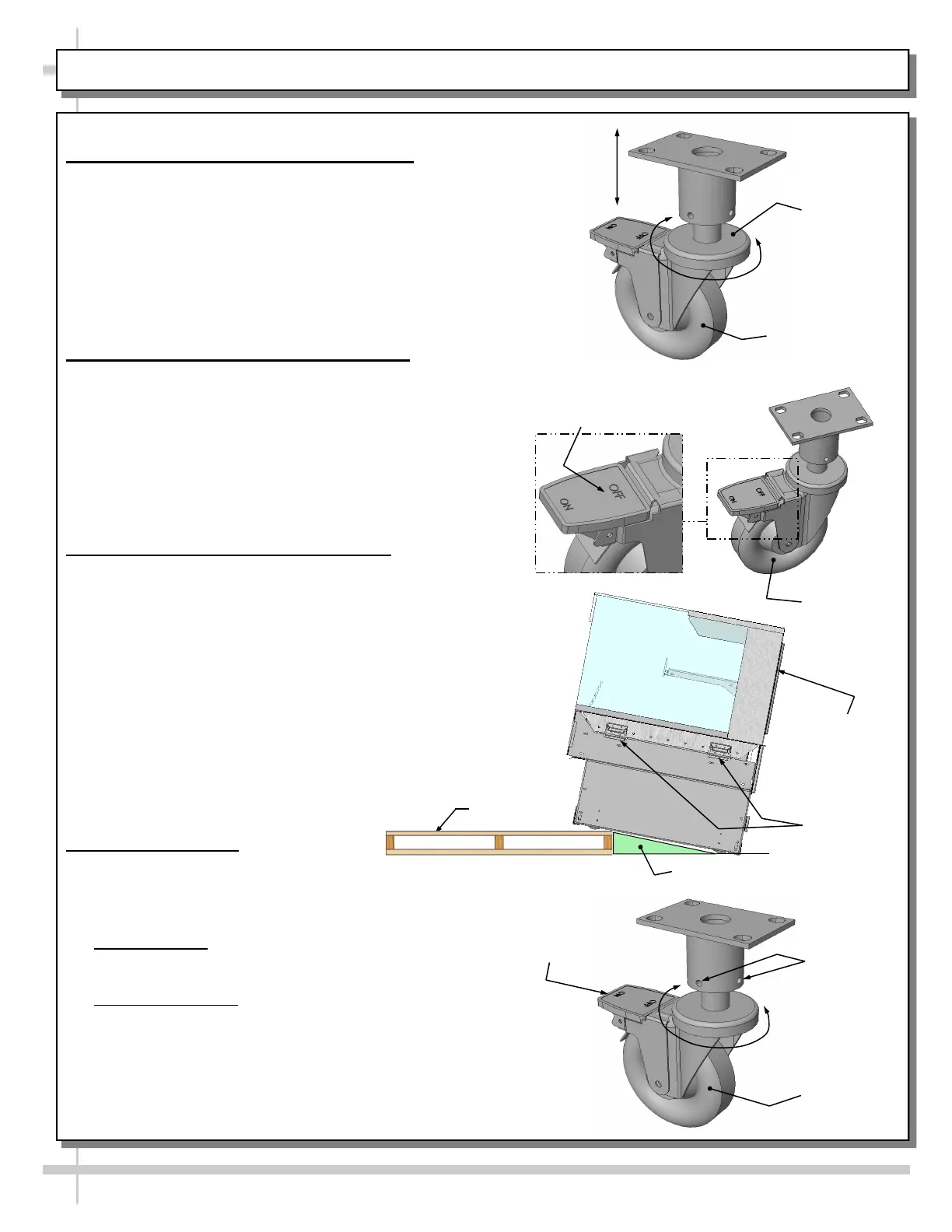 INSTALLATION, CONT’D.: CASTER ADJUSTMENT / LOCK / UNLOCK / CASE REMOVAL FROM SKID