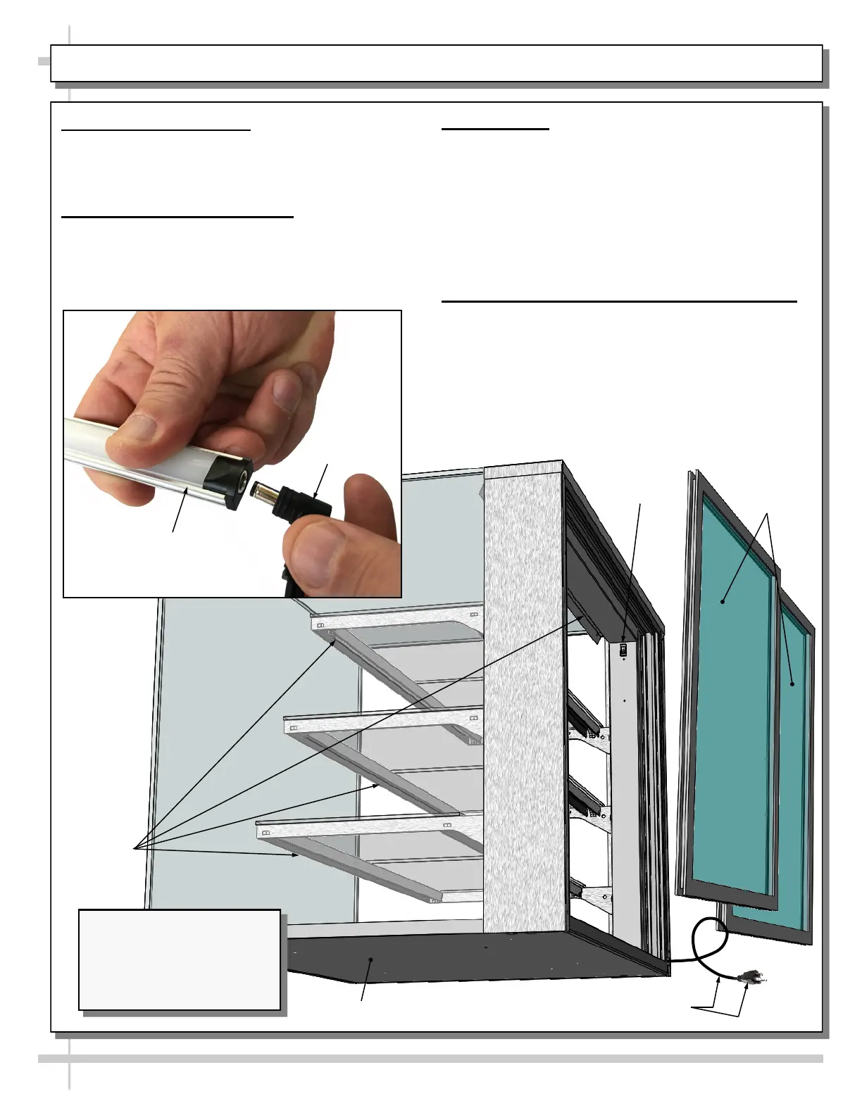 CASE DESIGN, CONT’D: PLUG & CORD / LED LIGHTS & SWITCH FIXTURES / REAR SLIDING DOORS