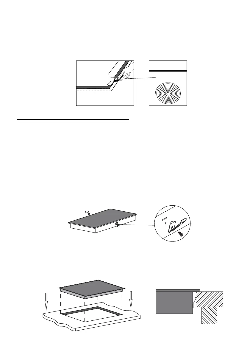 2. Fix the cooktop to the cabinet: Insert the cooktop into the kitchen