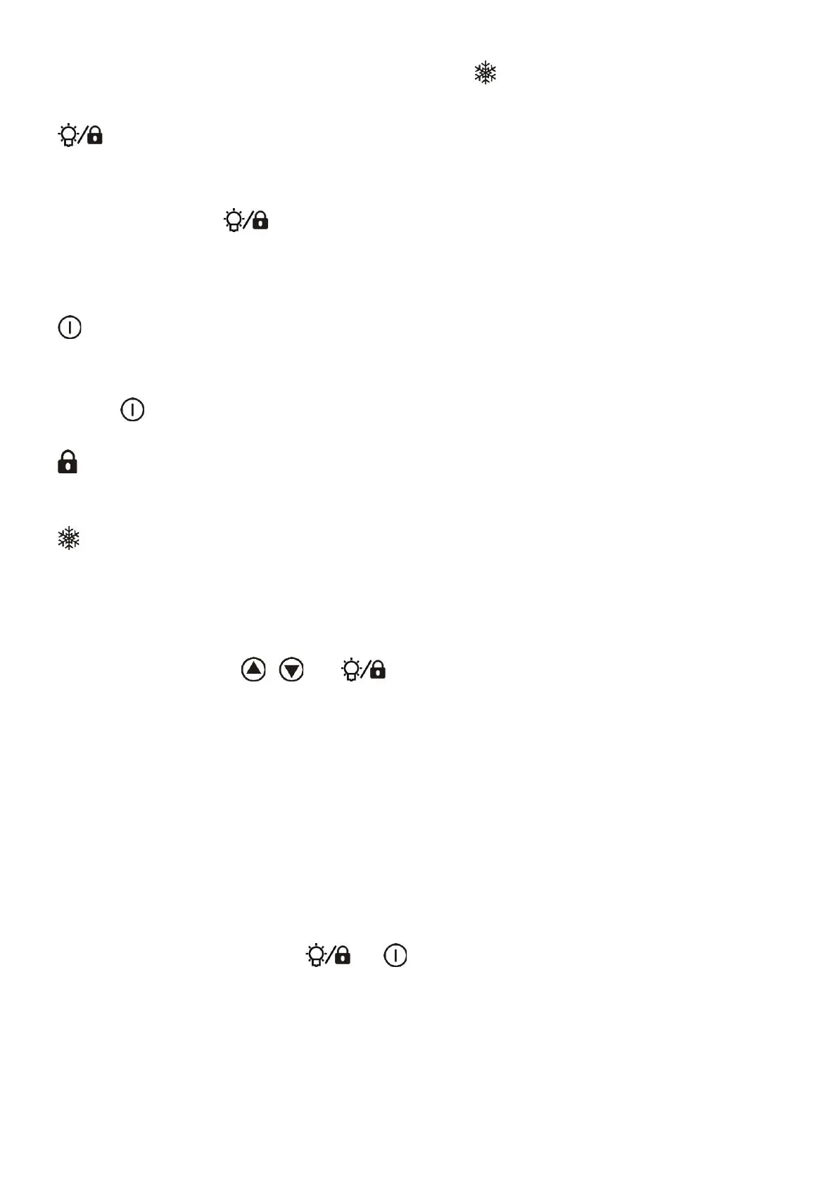 Mandatory defrost mode: Press the and at simultaneously for 10 seconds, and the appliance will