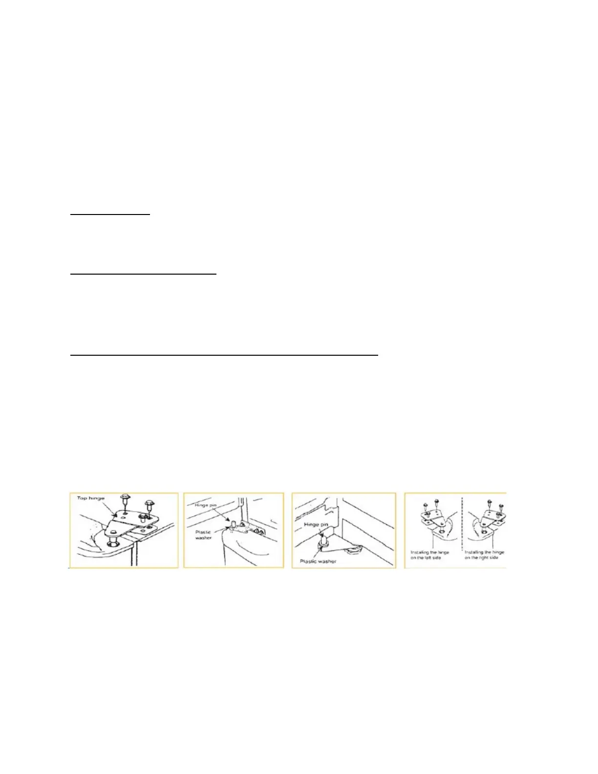1. Take off the upper hinge cover from the door and remove the screws that hold the top hinge.