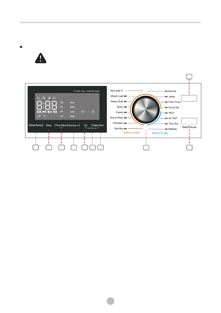 Press to turn your dryer on or into stand-by situation. If your dryer is on for more