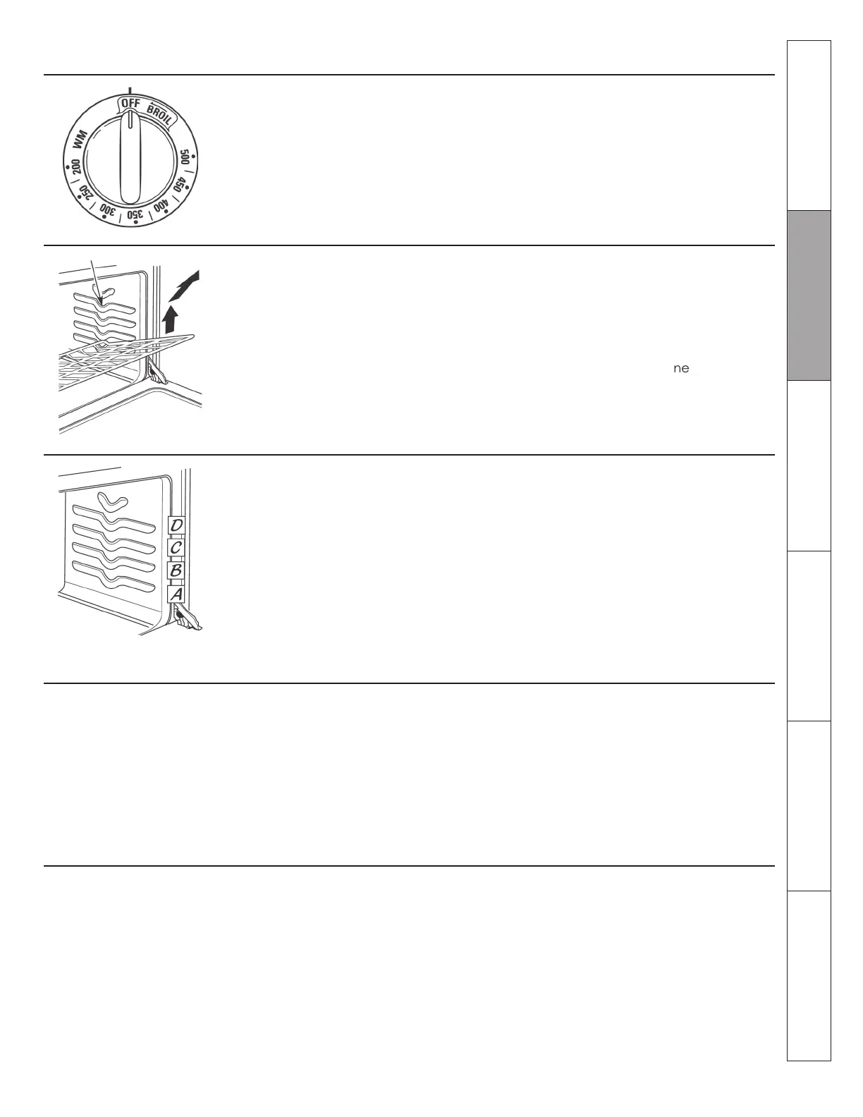 The oven has four shelf supports—A (bot-