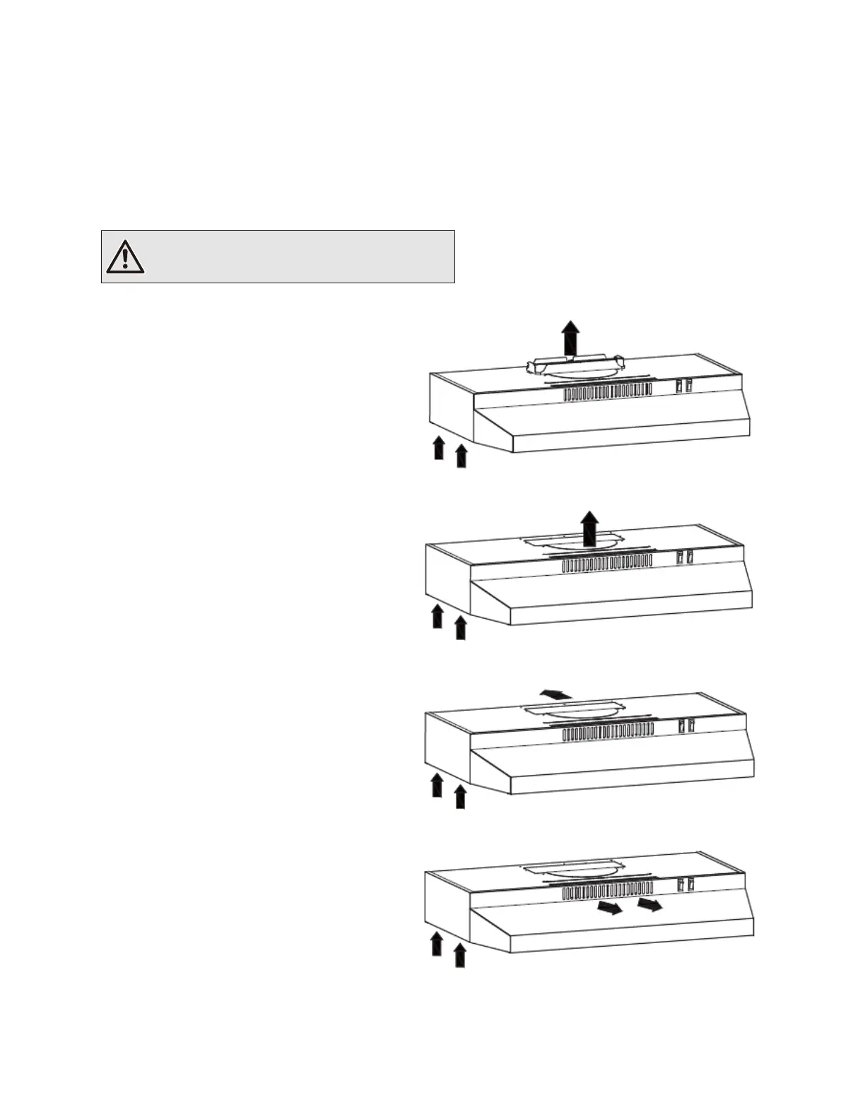 NOTE: If the hood is to be installed in a recirculating, non-vented, ductless manner, do not knock out