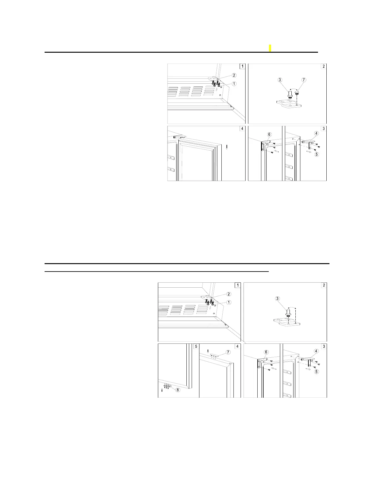 6. Unscrew and transfer the hole cover (7) and lock catch (8) to the opposite side of the glass door.