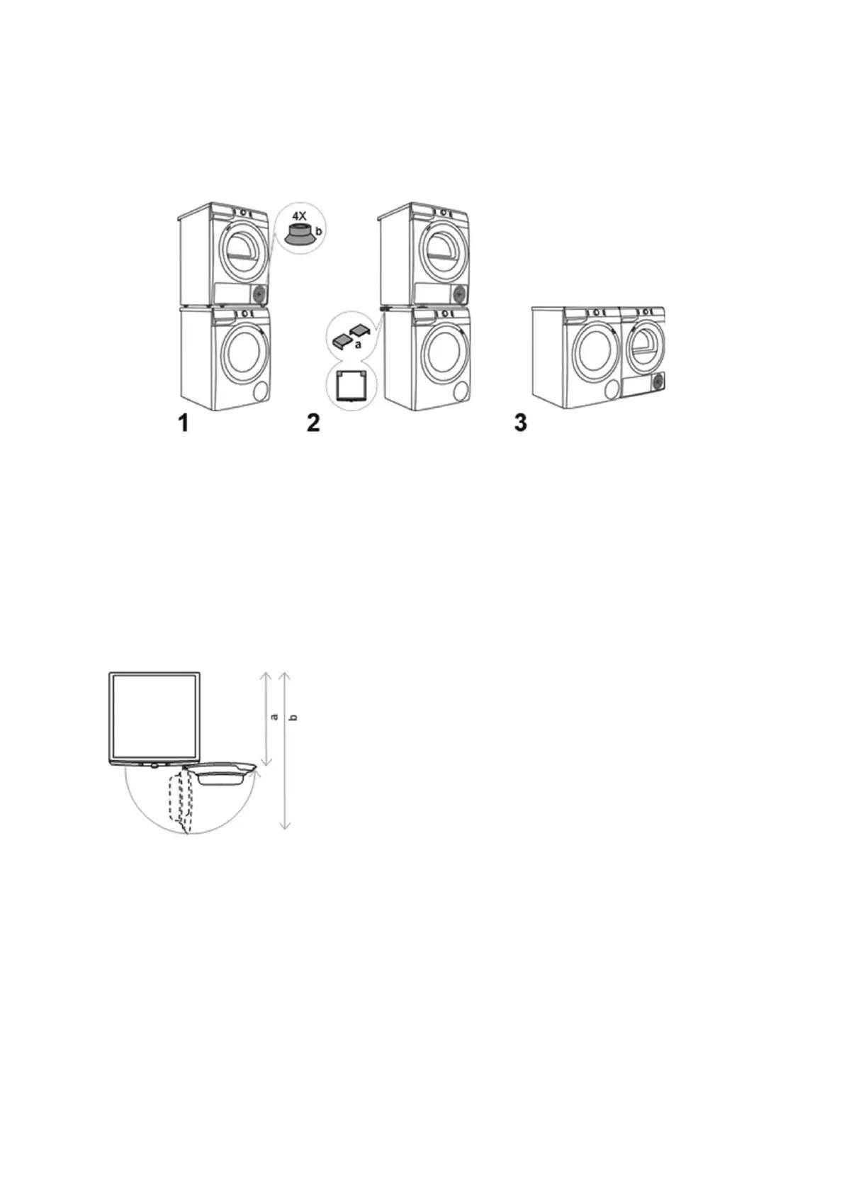 Additional equipment (dryer support (a) and vacuum feet (b) if they are not supplied) is