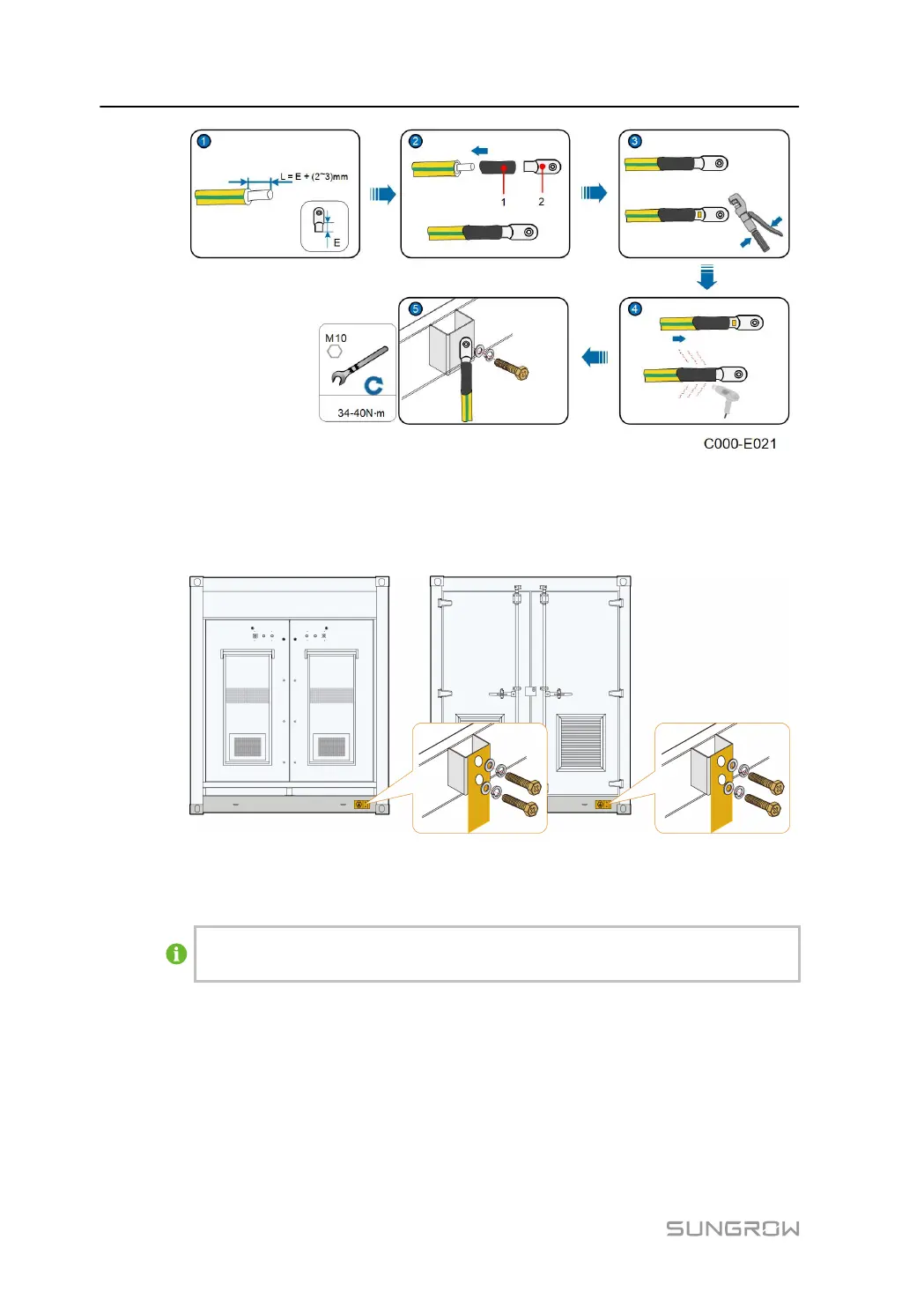 • Weld the grounding steel flat onto the external grounding point, after which anti-