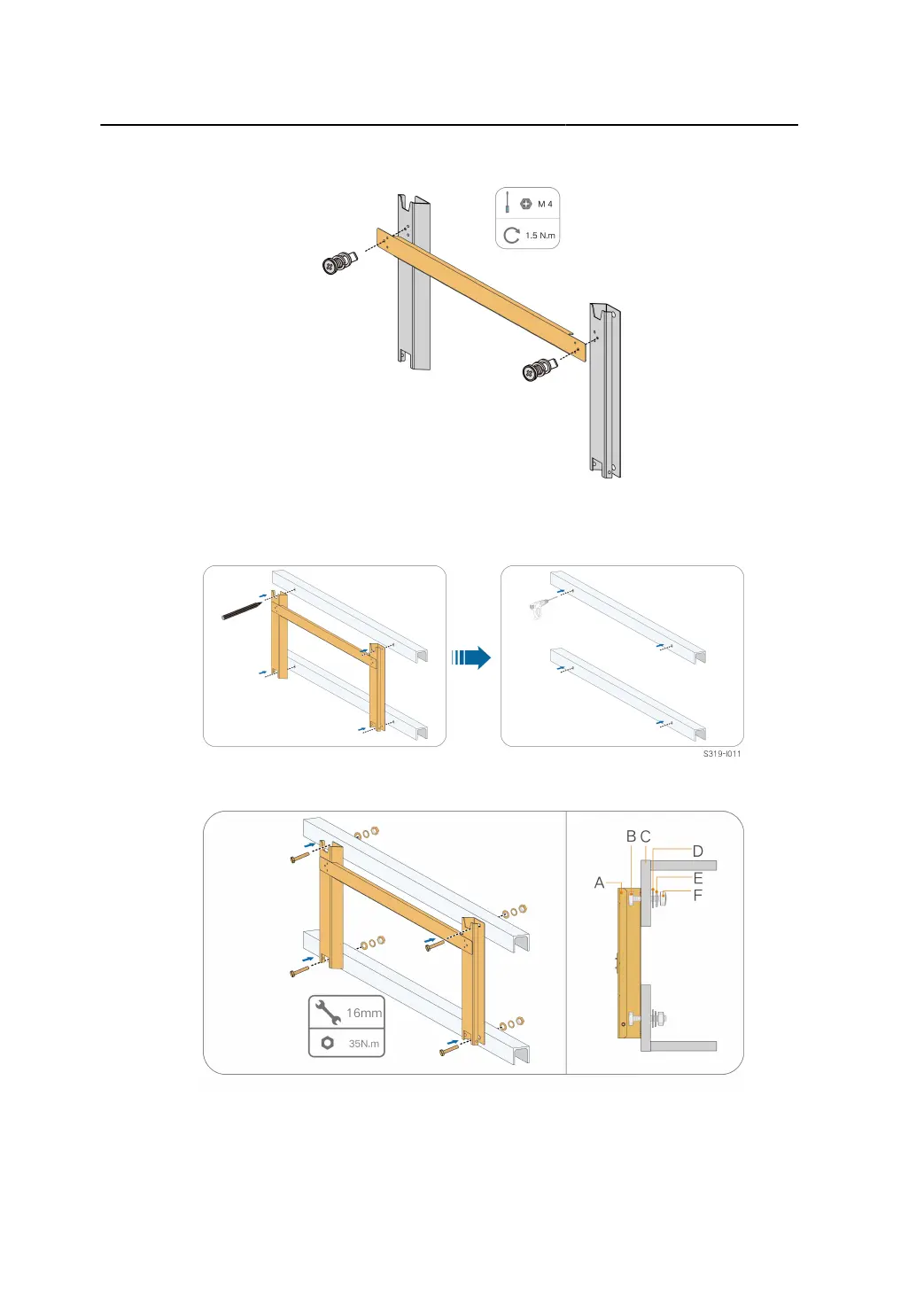 Place the assembled mounting-bracket onto the PV bracket.Adjust the angle with a level and mark