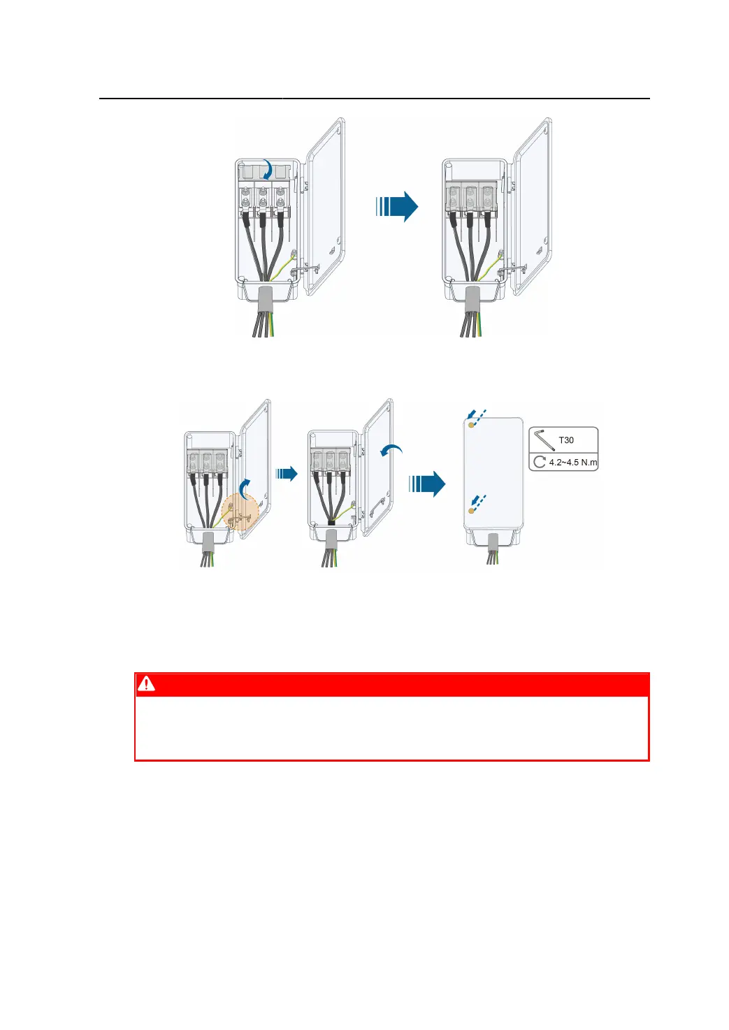 step 8 Remove the limit rod and place it in place. Close the junction box and tighten the two screws on