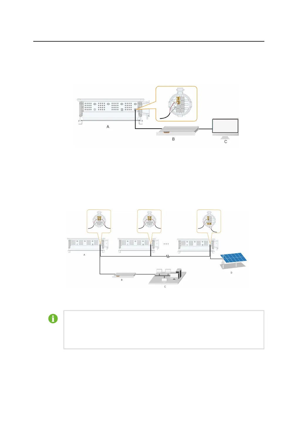 In case of multiple inverters, all the inverters can be connected via RS485 cables in the daisy