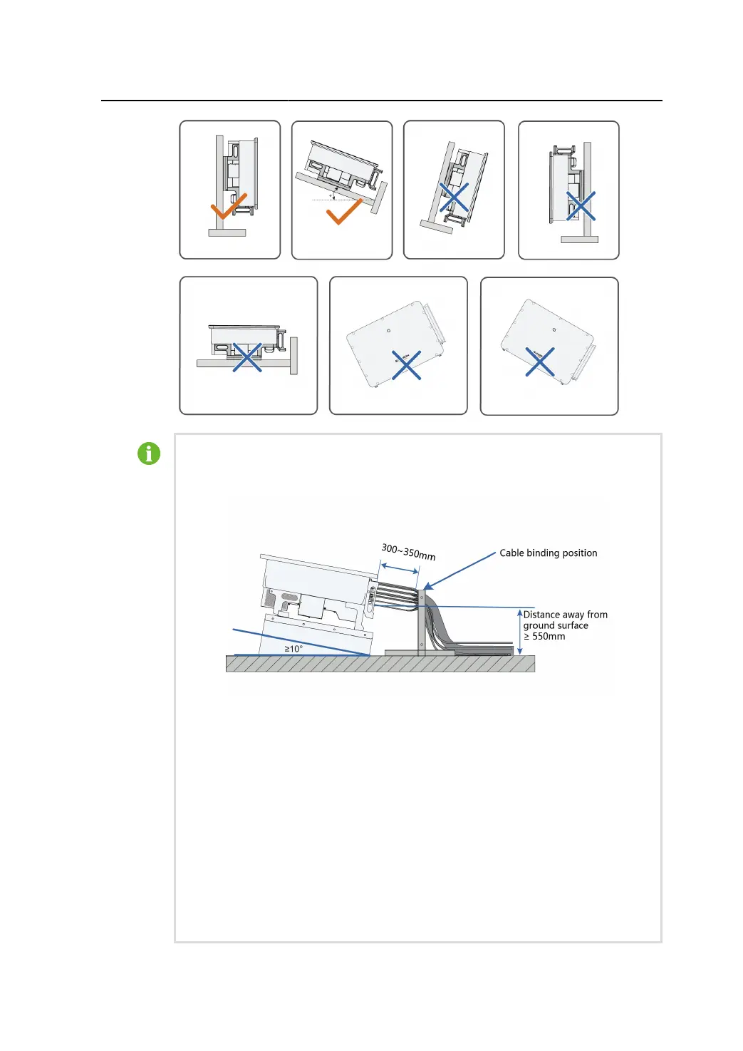 Bind the cables at the positions 300~350 mm away from the DC connector, AC