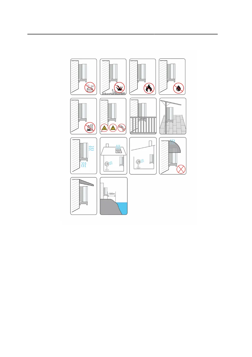 Do not install the inverter in places prone to water leak, e.g., under the air-conditioner