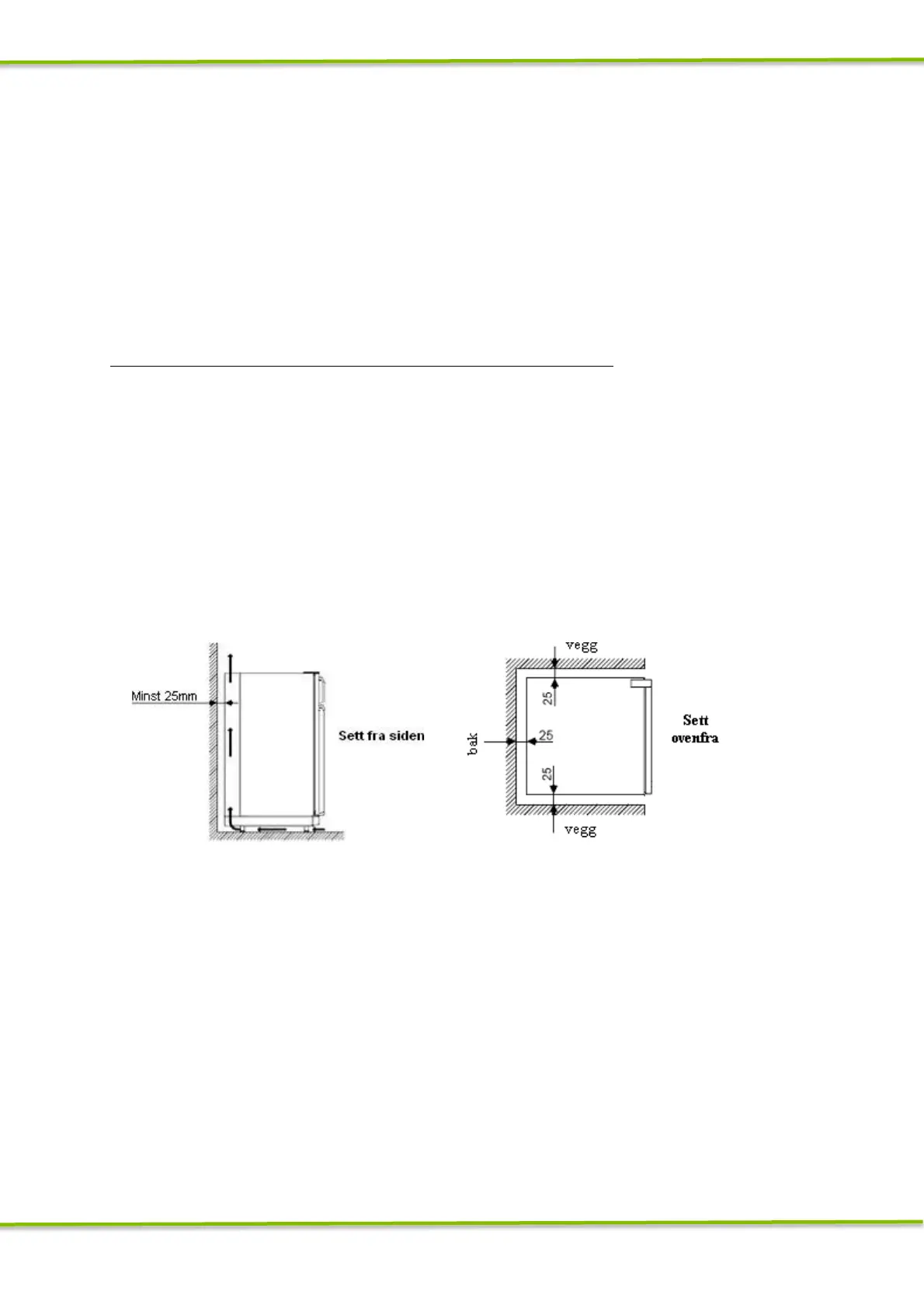 från bak- och sidoväggarna, avståndet ovanför kylskåpet måste vara minst 10 cm.