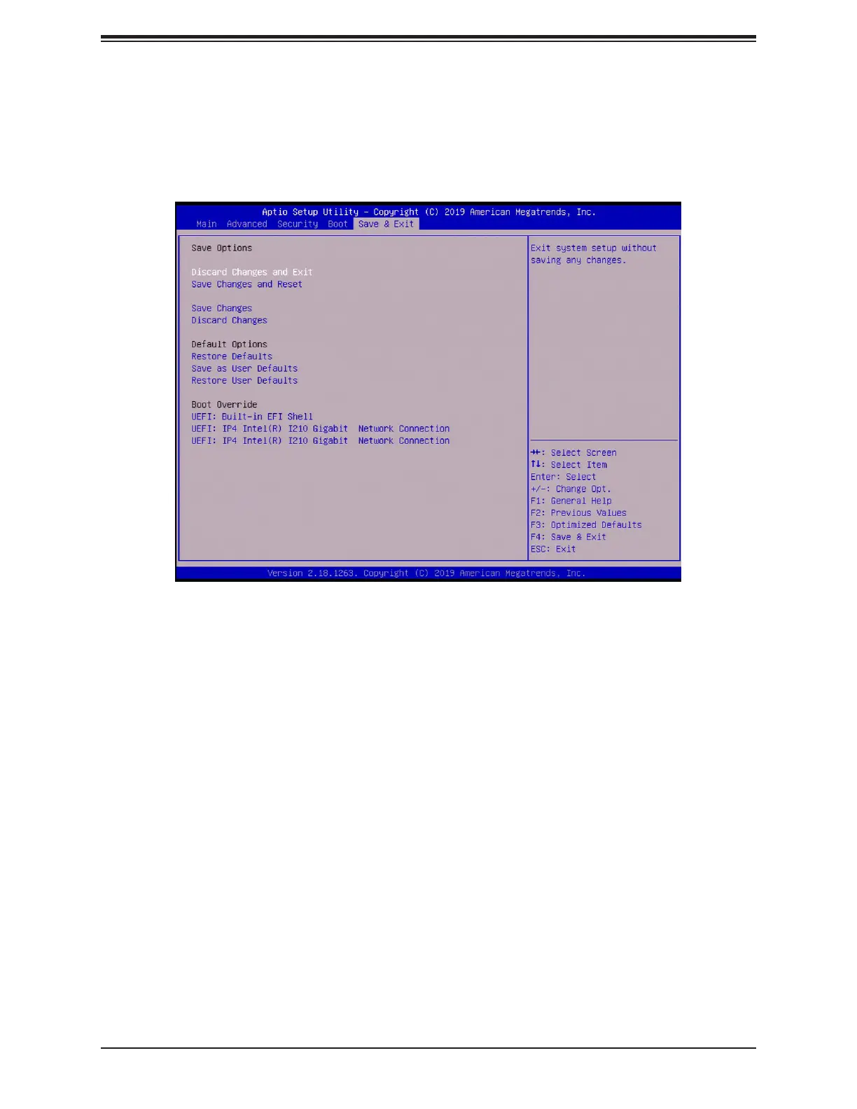 Use this menu to save settings and exit the BIOS.