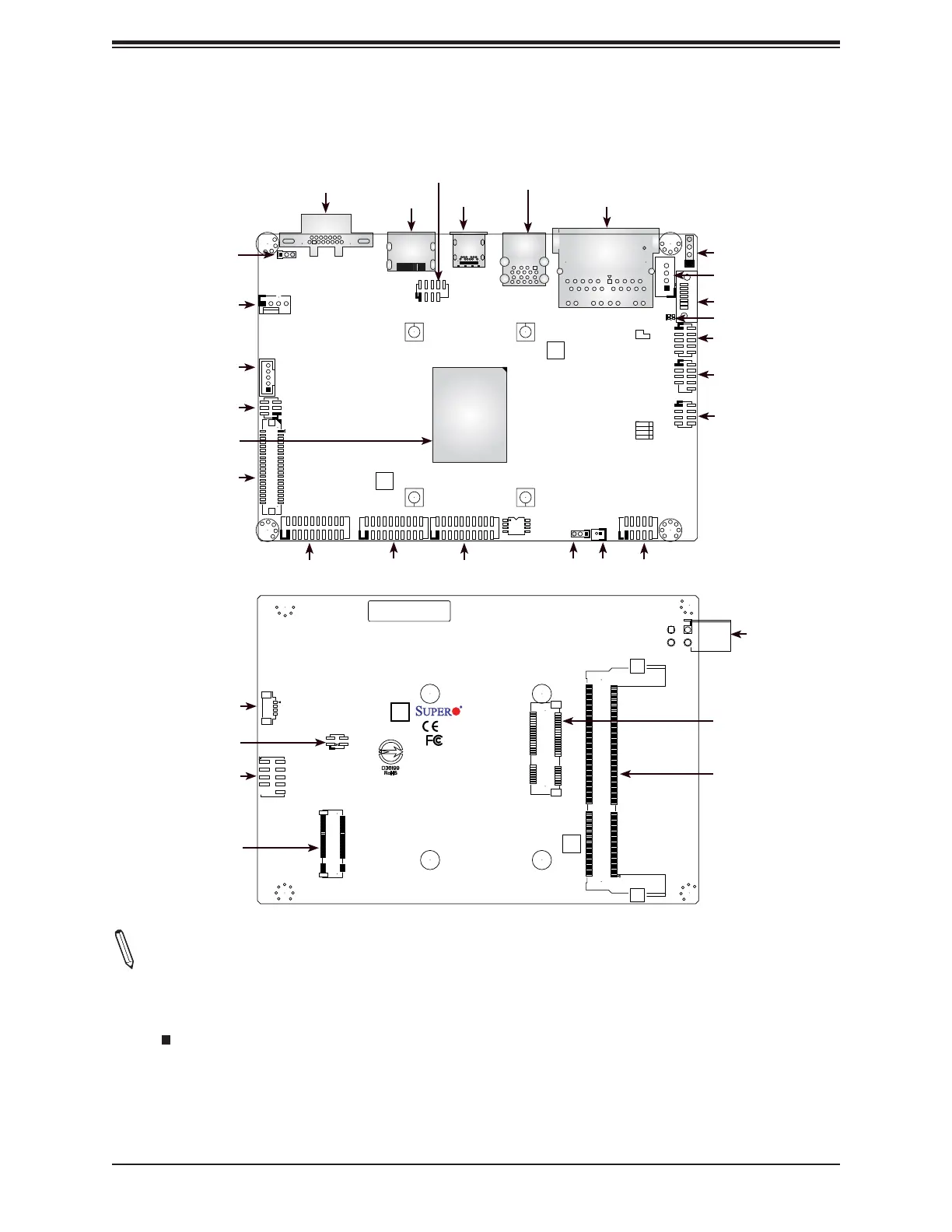 • Jumpers/LED indicators not indicated are used for testing only.