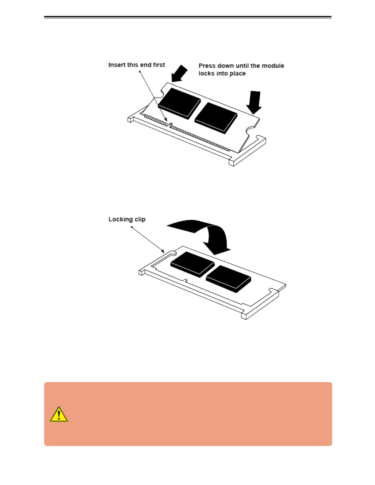 2. Insert the SO-DIMM module vertically at about a 45 degree angle. Press down until the
