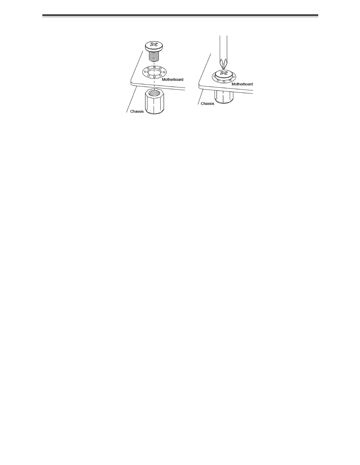 6. Insert pan head #6 screws into the mounting holes on the motherboard and the matching
