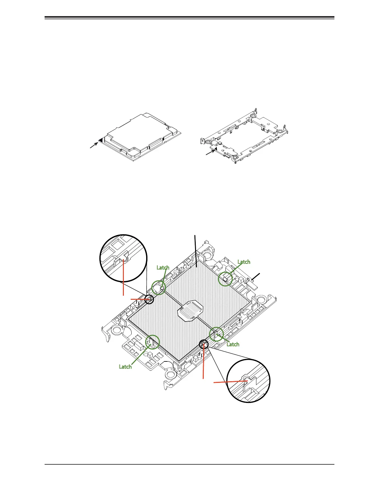 the processor carrier as shown below. These triangles indicate the location of pin 1.