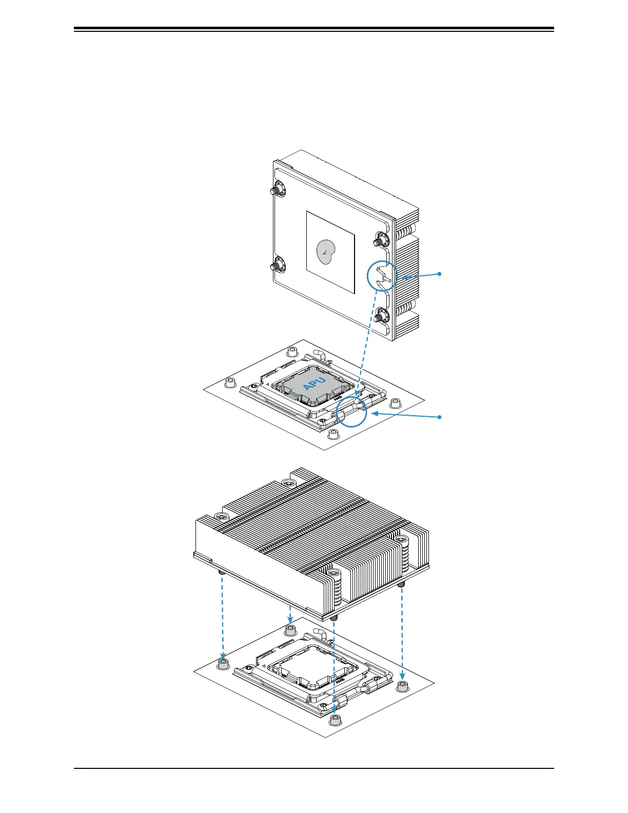1. After the processor is secure, you must install the heatsink to the socket frame. Ensure