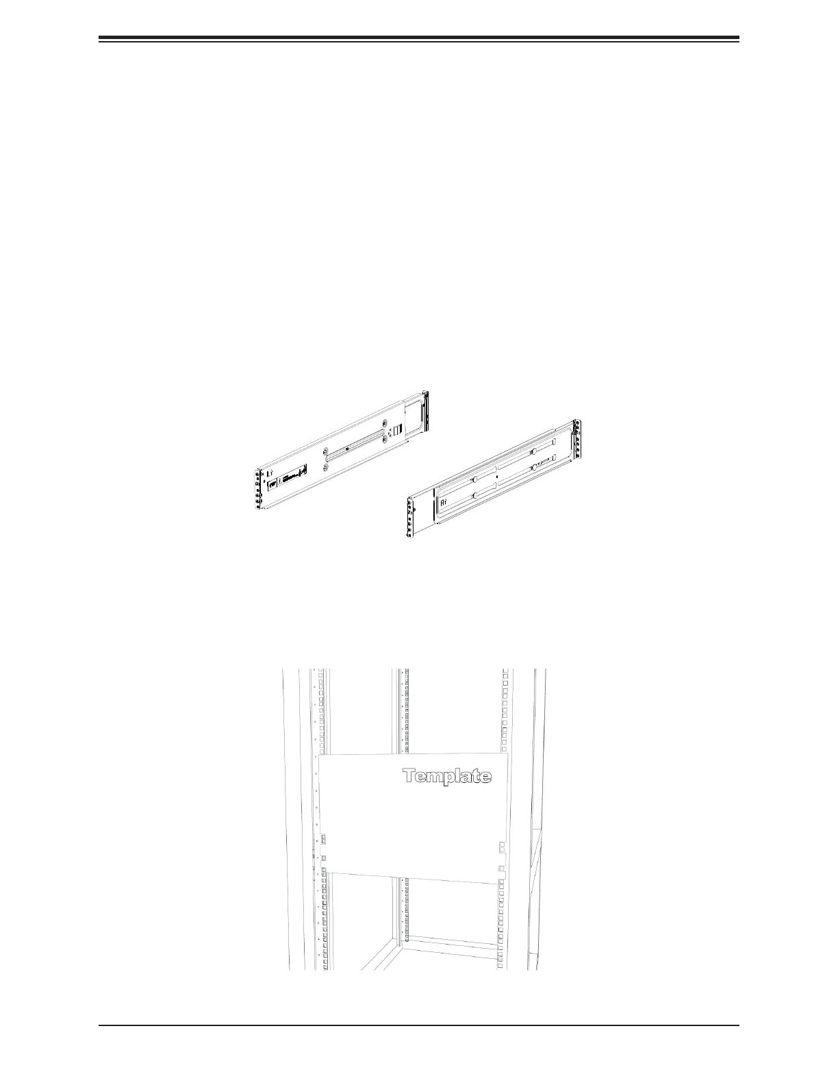 2. Position the template at the front of the rack to determine the locations of the screws for