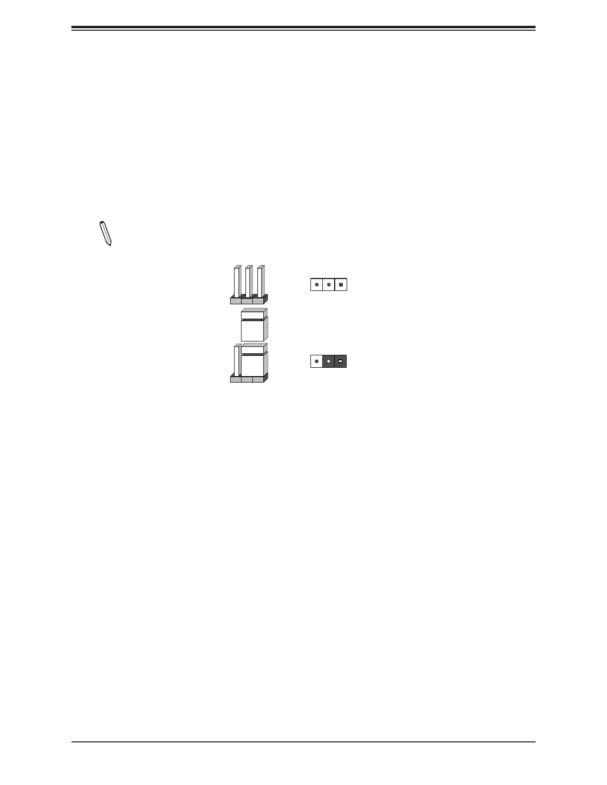 settings. Jumpers create shorts between two pins to change the function of the connector.
