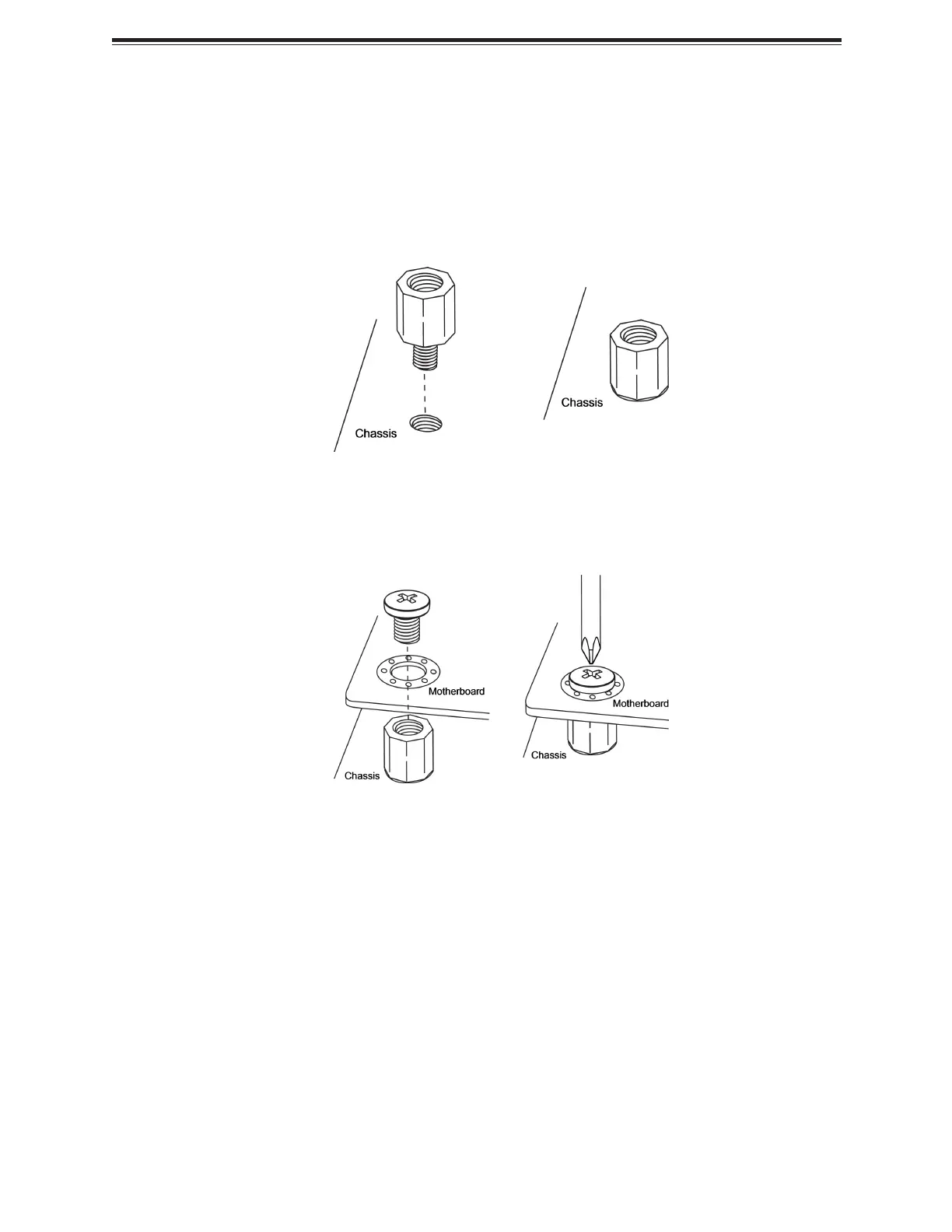 motherboard against the mounting holes on the chassis.