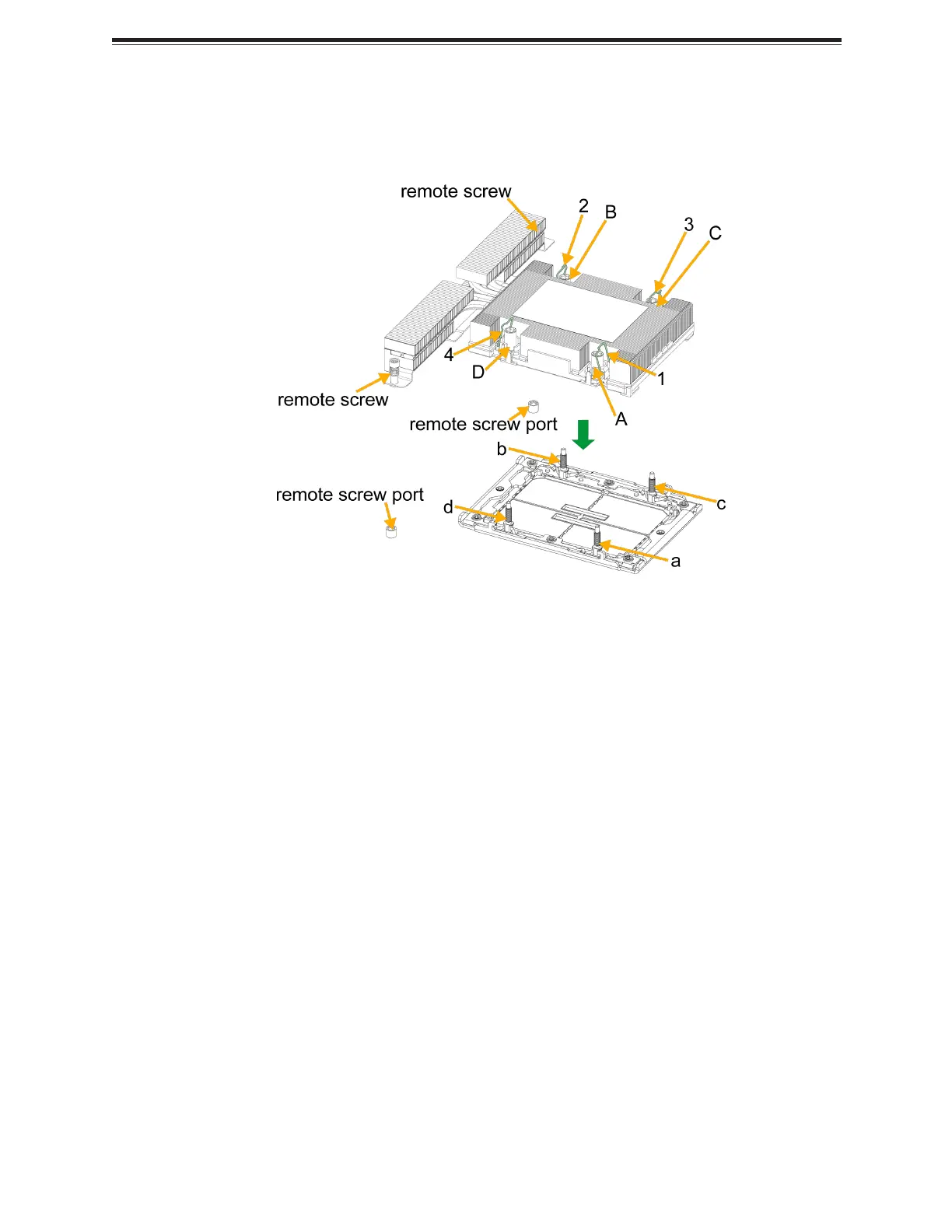 3, and 4) on the heatsink. Align the PEEK nuts with the threads on the LGA7529 Socket