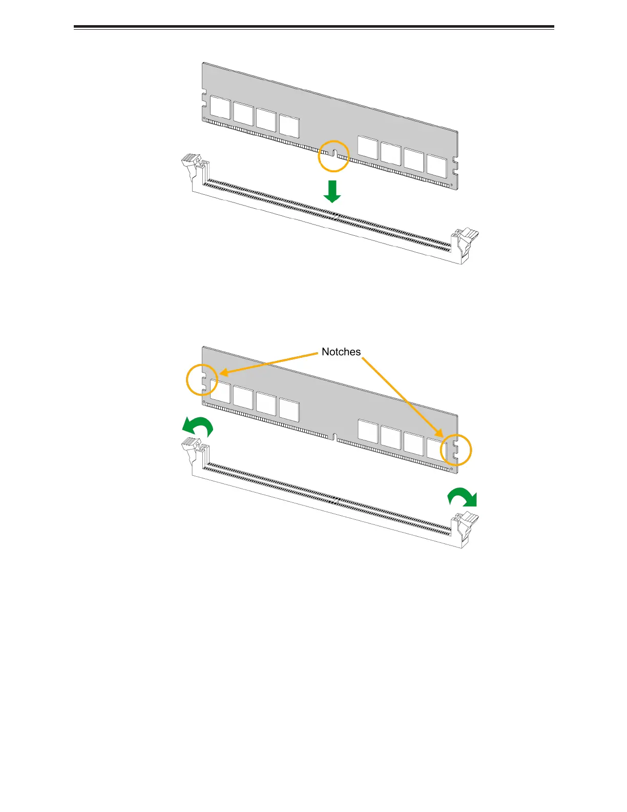 6. Press the release tabs to the lock positions to secure the DIMM into the slot.