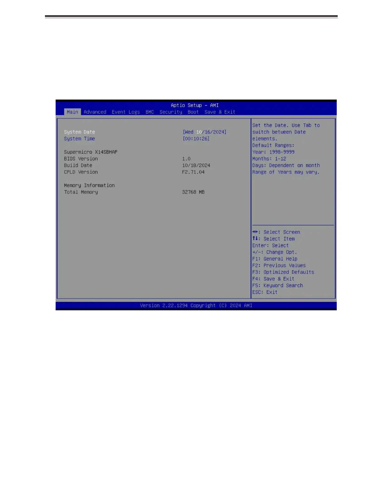 the Main setup screen, select the Main tab at the top of the screen. The Main BIOS setup