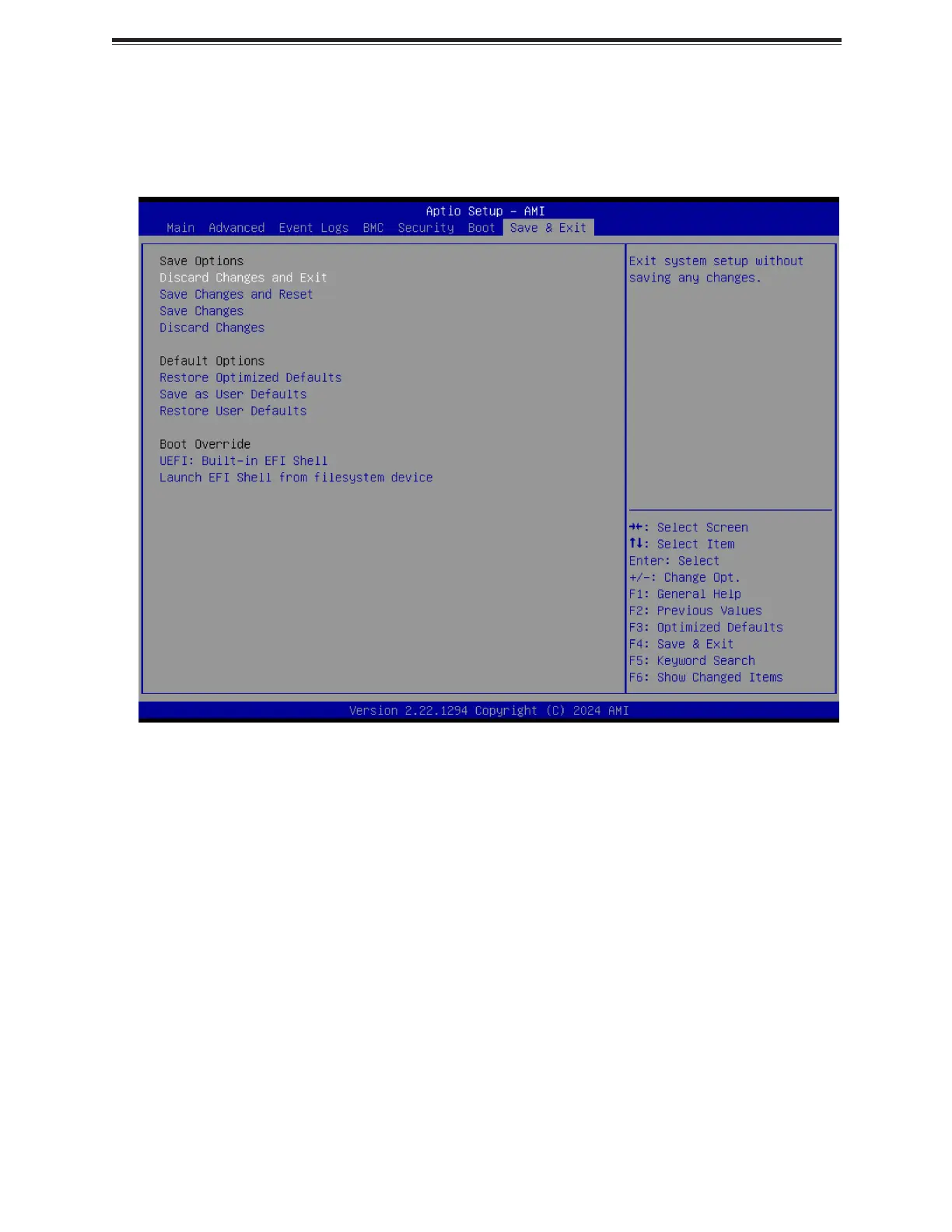 Select Save & Exit from the BIOS Setup screen to configure the settings below.