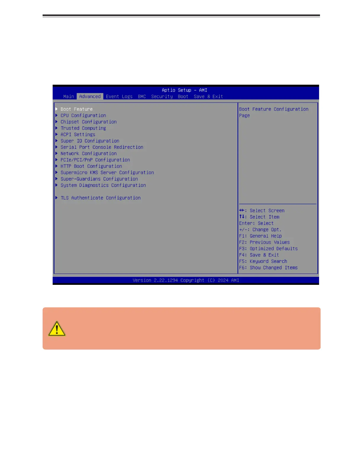 Use the arrow keys to select the Advanced submenu and press <Enter> to access the