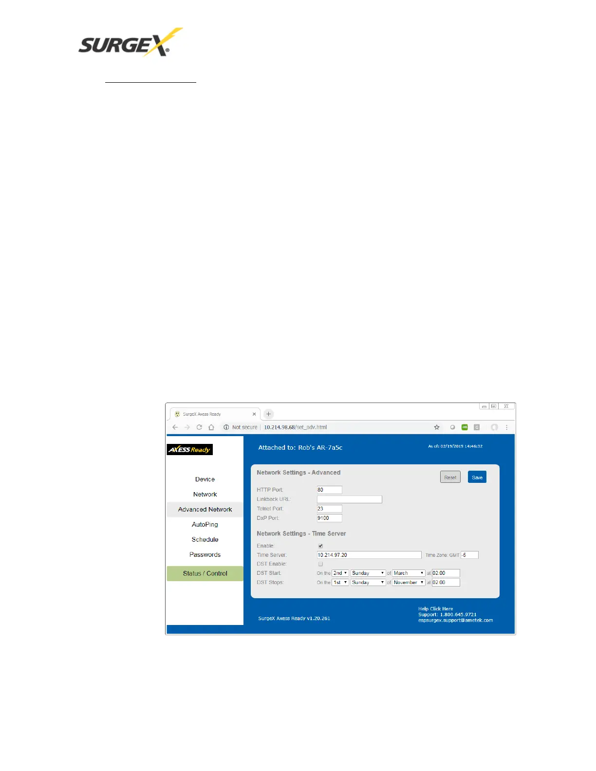 • Time Setup: Setup of the time server is required for Scheduling and Logging