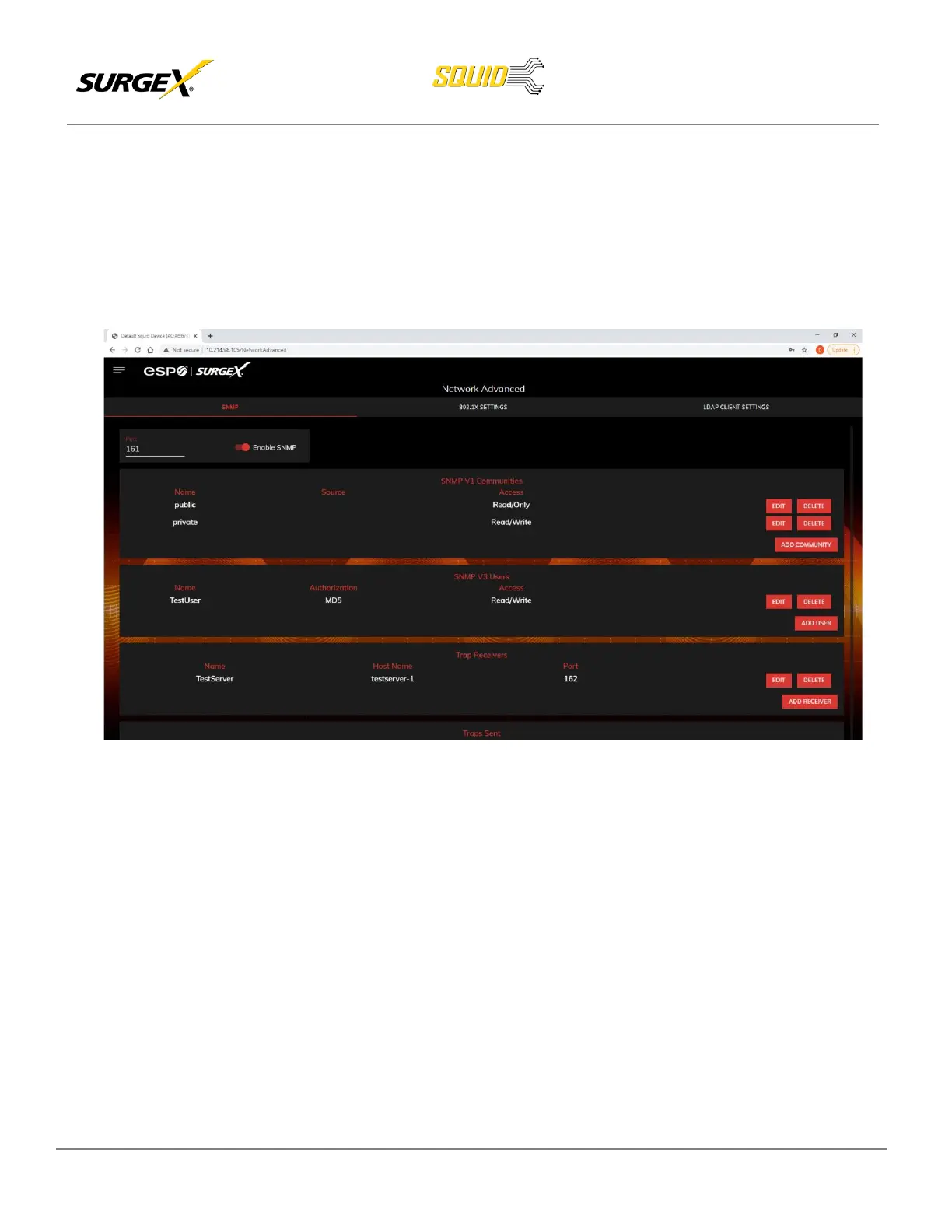 The SNMP tab allows for the specification of parameters for the SNMP agent,