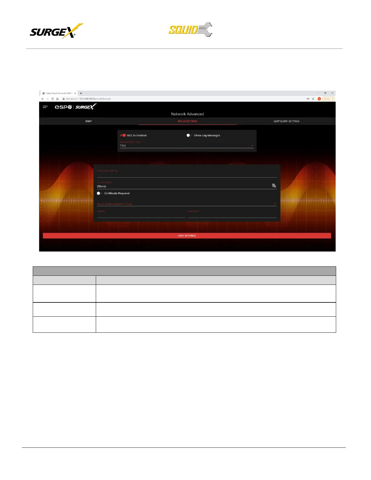 The 802.1X Settings tab allows for the specification of 802.1X authentication and
