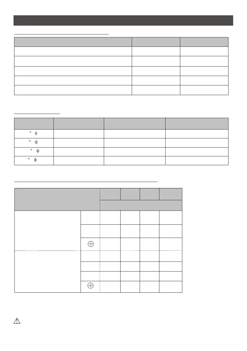 Note: This table is only for reference, the installation shall meet the requirements of local laws