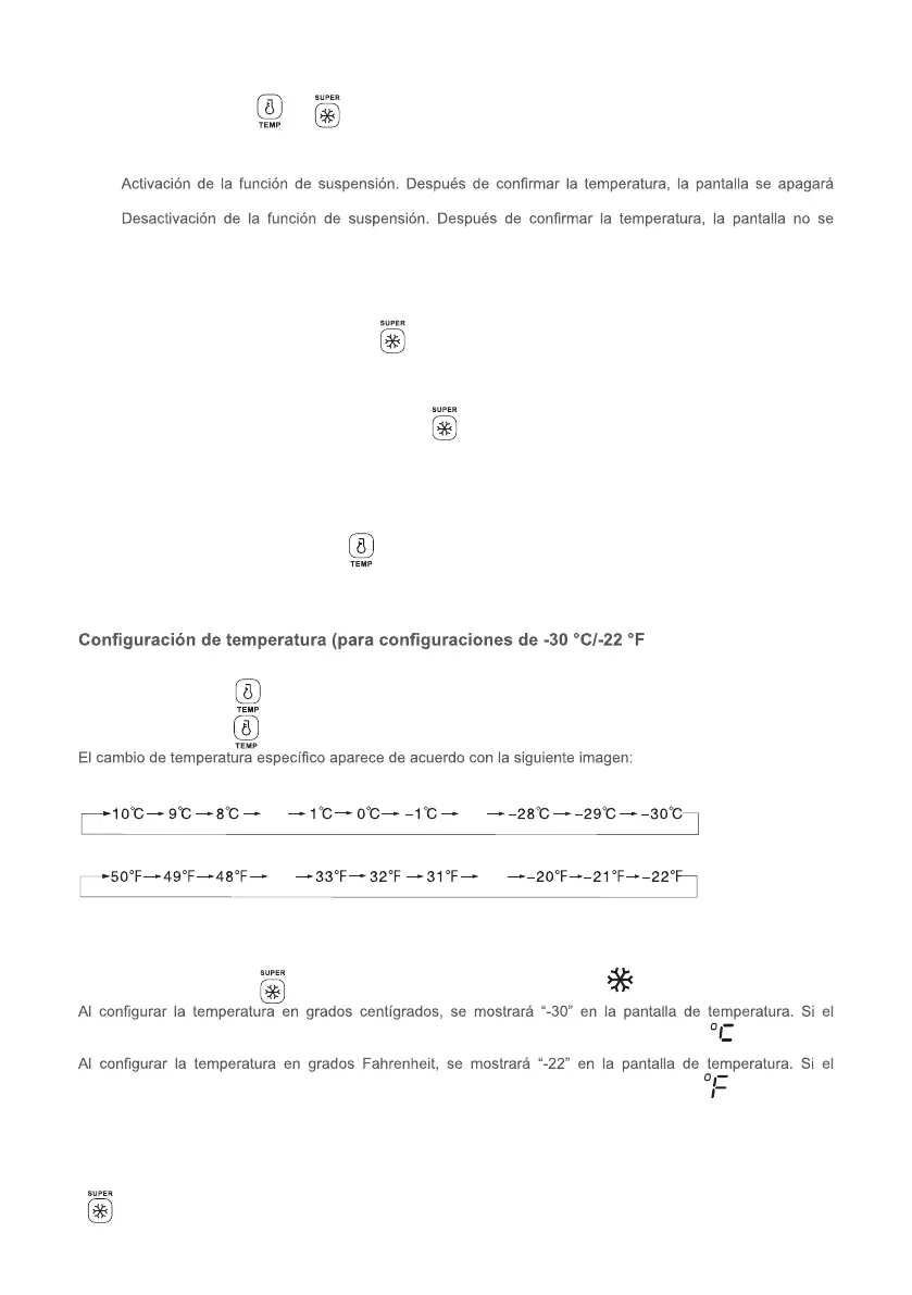 ④ En el modo de supercongelación, puede salir del modo de supercongelación al volver a presionar el botón