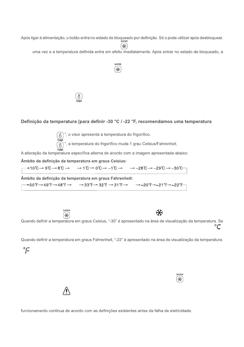 o compressor continuar a funcionar continuamente, o indicador luminoso da temperatura em graus Celsius “ ”