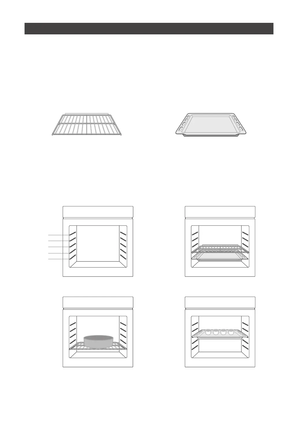 Para que el horno funcione correctamente, la rejilla y la bandeja solo se deberían