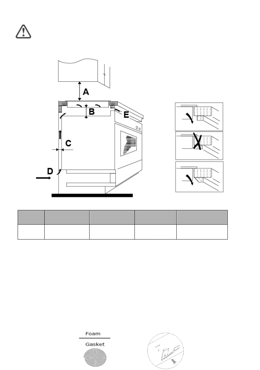 Nota: A distância de segurança da placa para o móvel superior deve ser