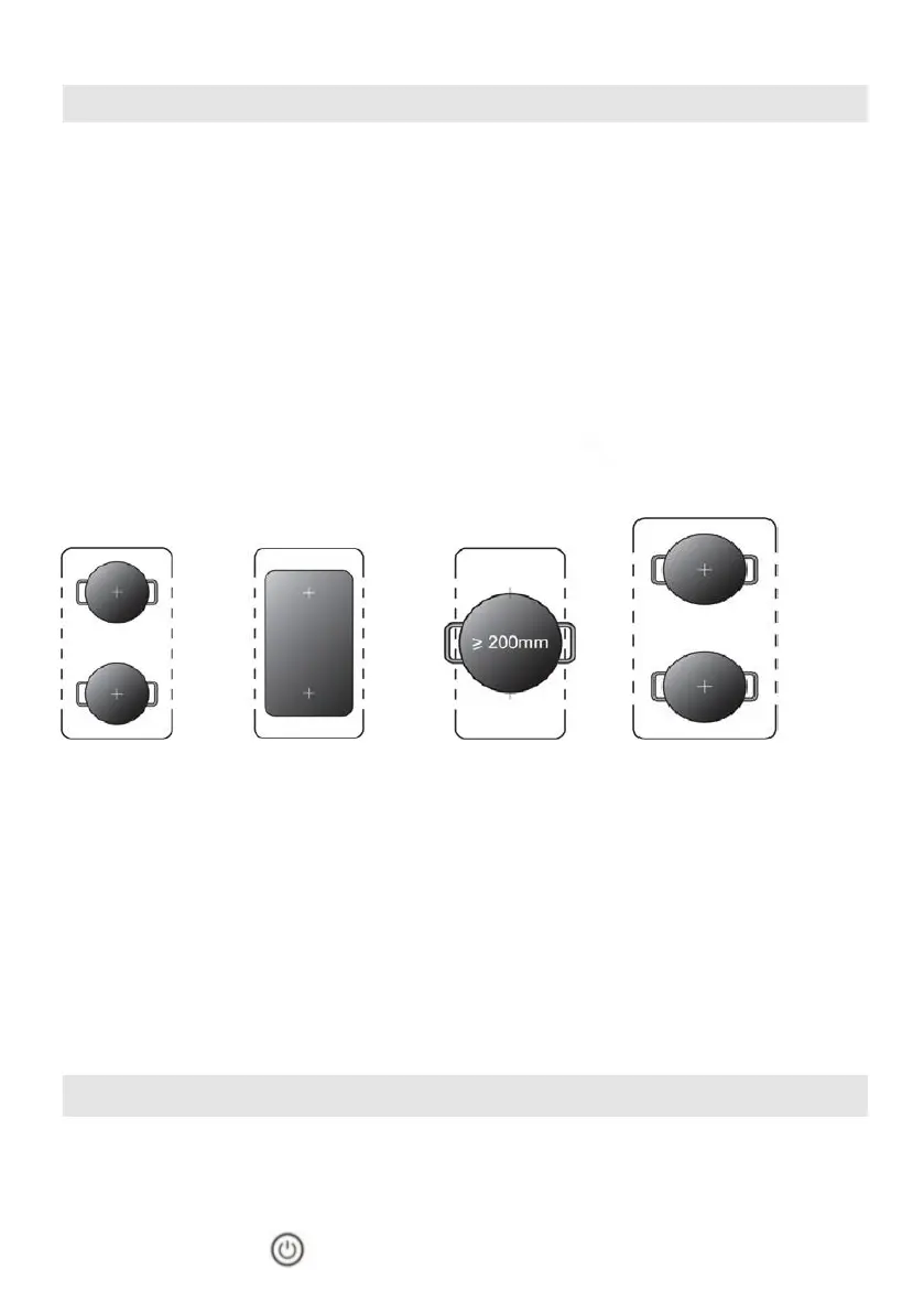 Importante: Assegure-se de colocar os tachos centrados numa zona de cocção.