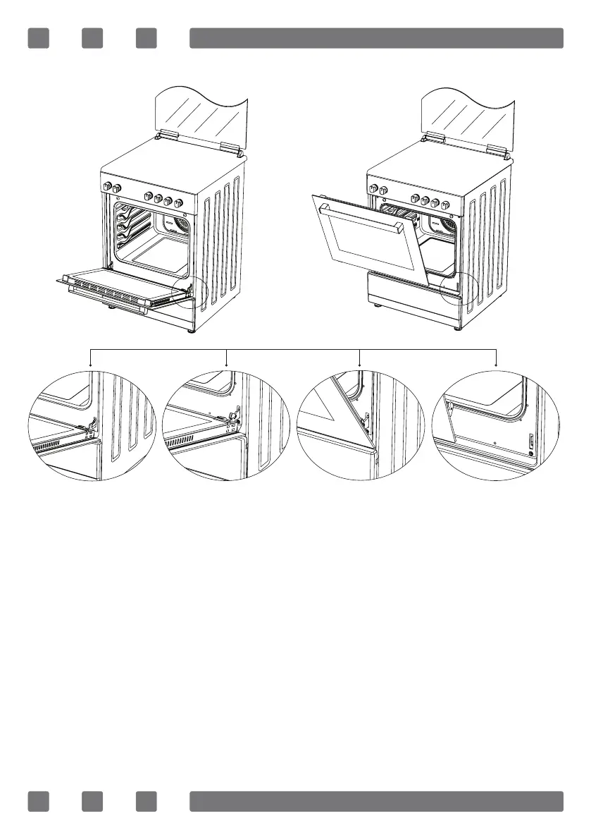Para poner la puerta del horno de nuevo a su lugar, realice el proceso de quitar al revés.