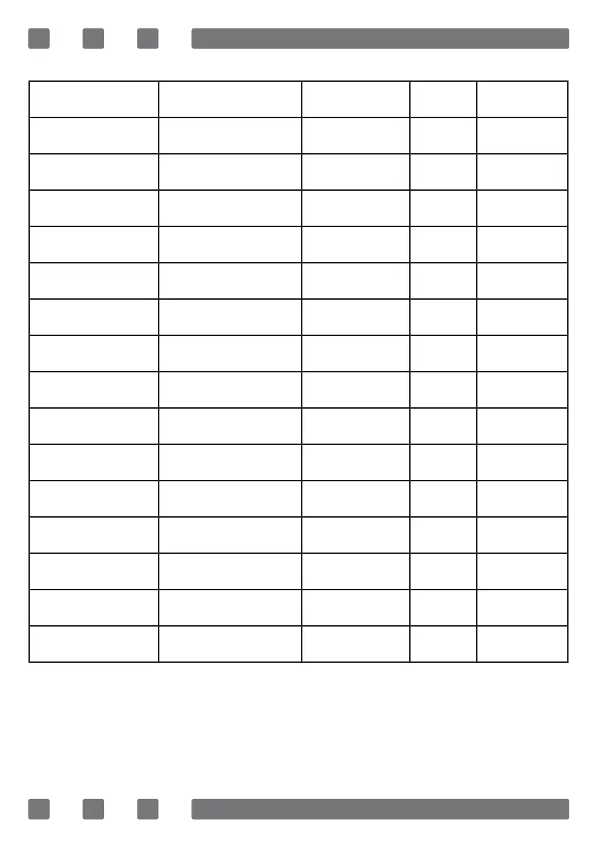 COOKING TIME TABLE