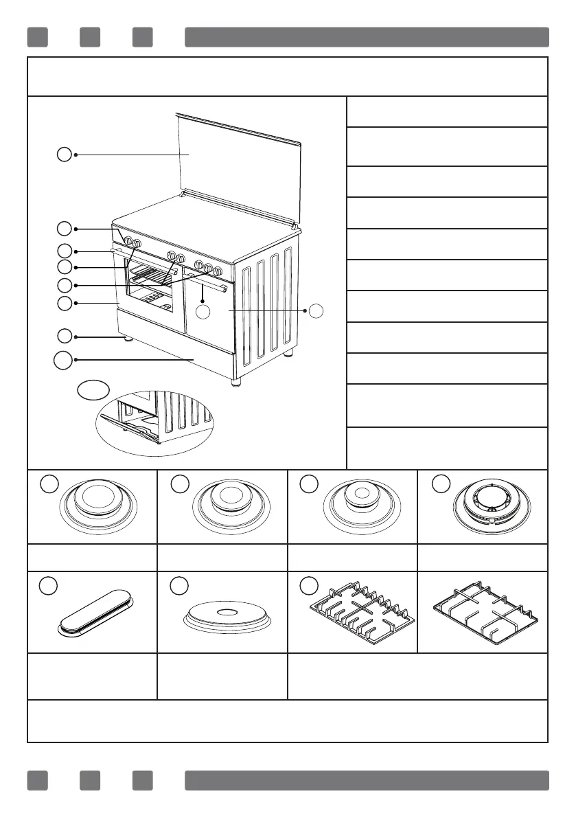 11. Quemador grande 12. Quemador intermedio 13. Quemador pequeño * 14. Quemador para wok