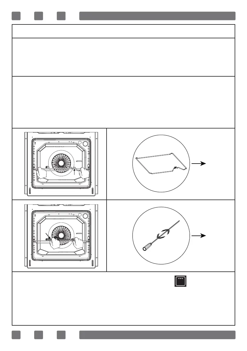 both sides of the skewer (B). Place the skewer (B) on the rotisserie