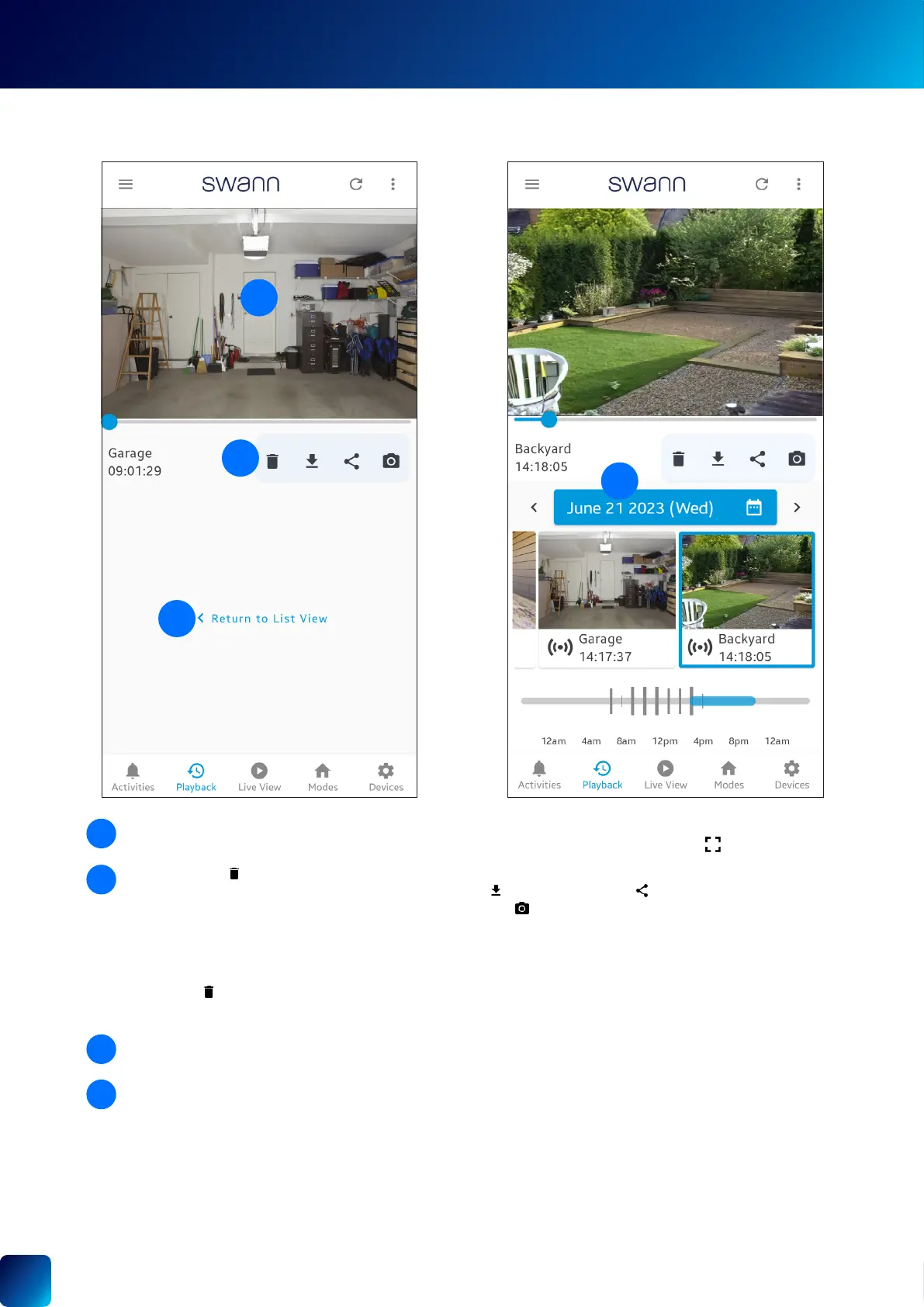 • Downloaded clips can be viewed through App Menu > Saved Playbacks or your phone's Gallery/Photo app.