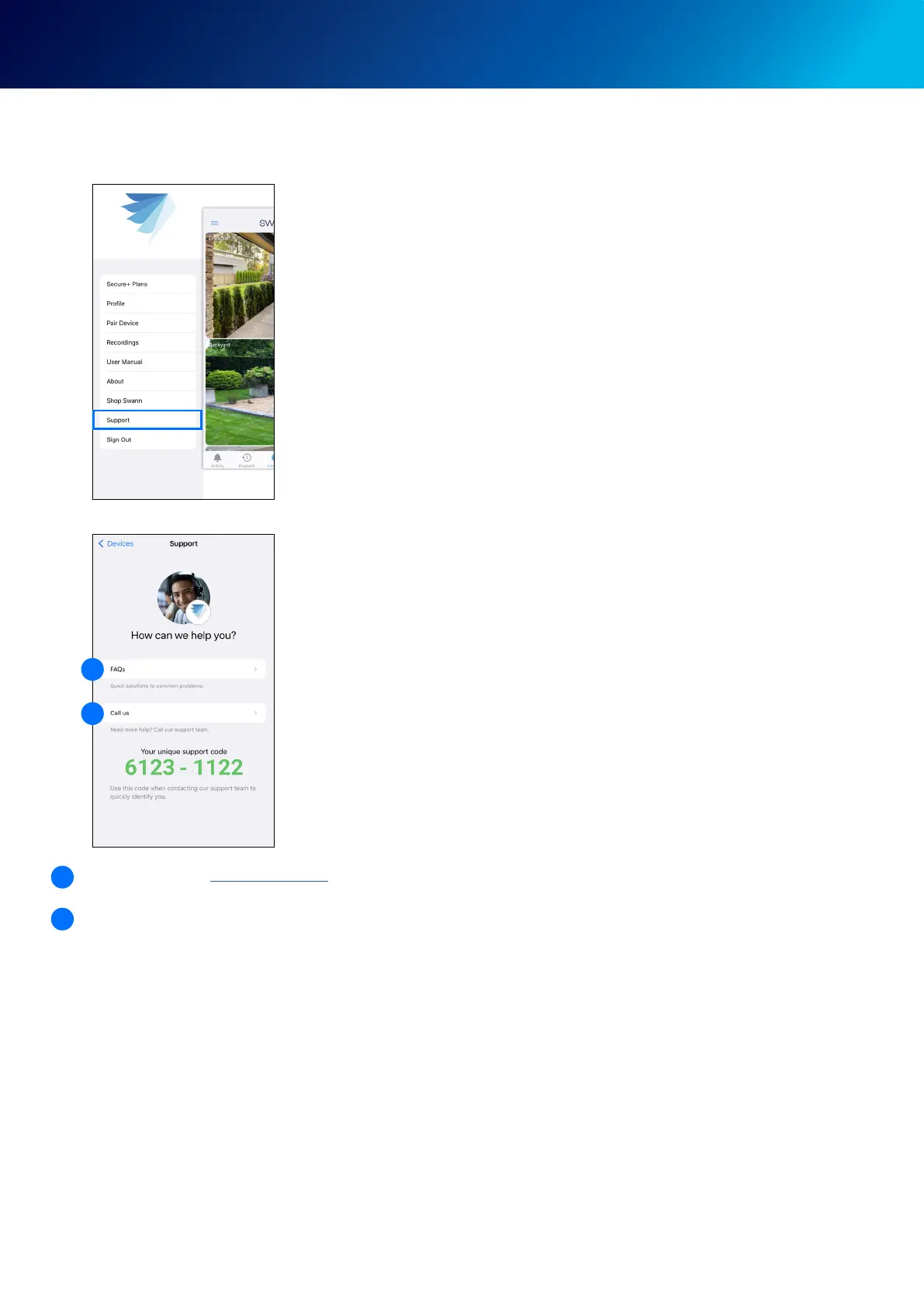 • Open the link to the Swann Help Center website where you can nd the latest product FAQs, video tutorials, pairing guides,