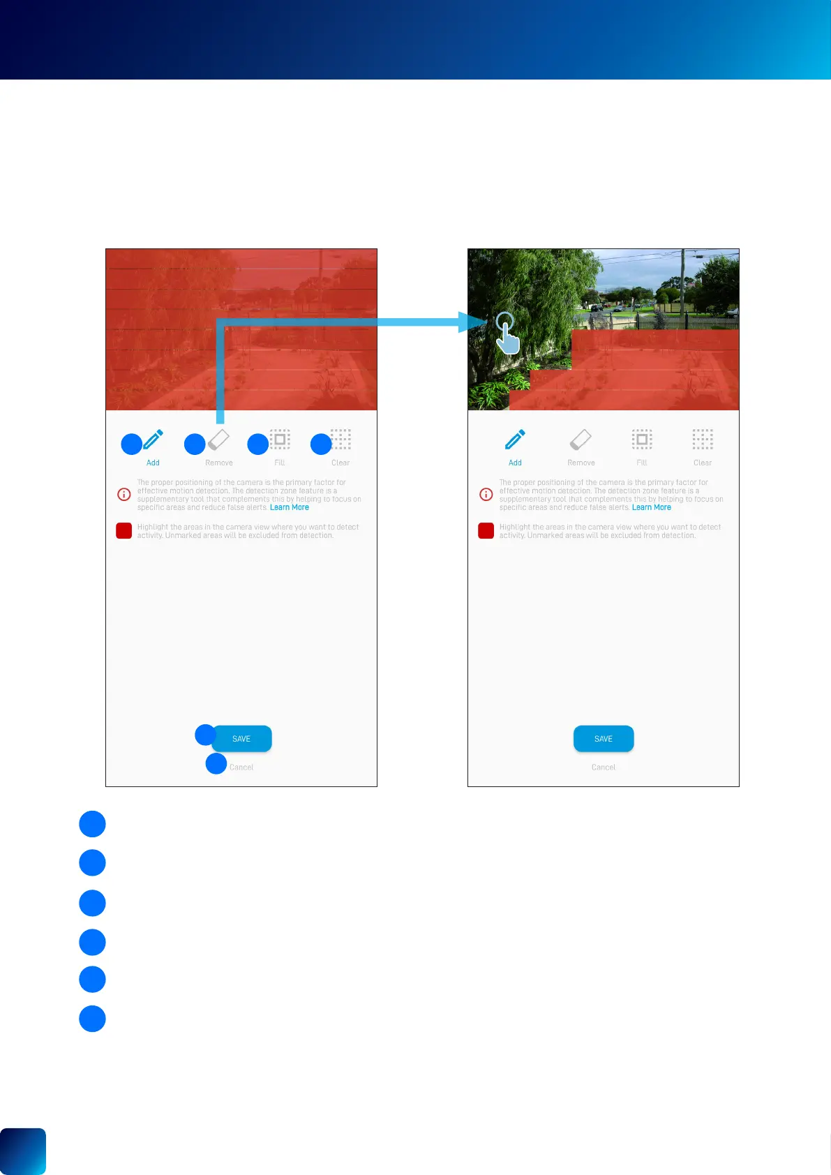 Tap the Add icon to highlight the areas of the camera view that you want to detect motion activity.