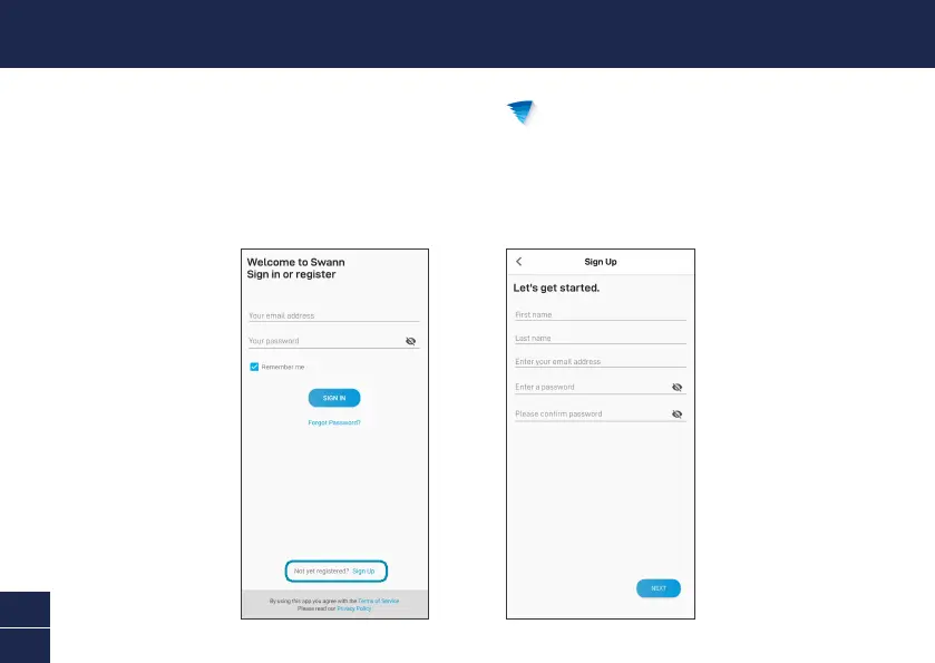2 Open the app and create your Swann Security account by tapping “Not yet registered? Sign Up” at
