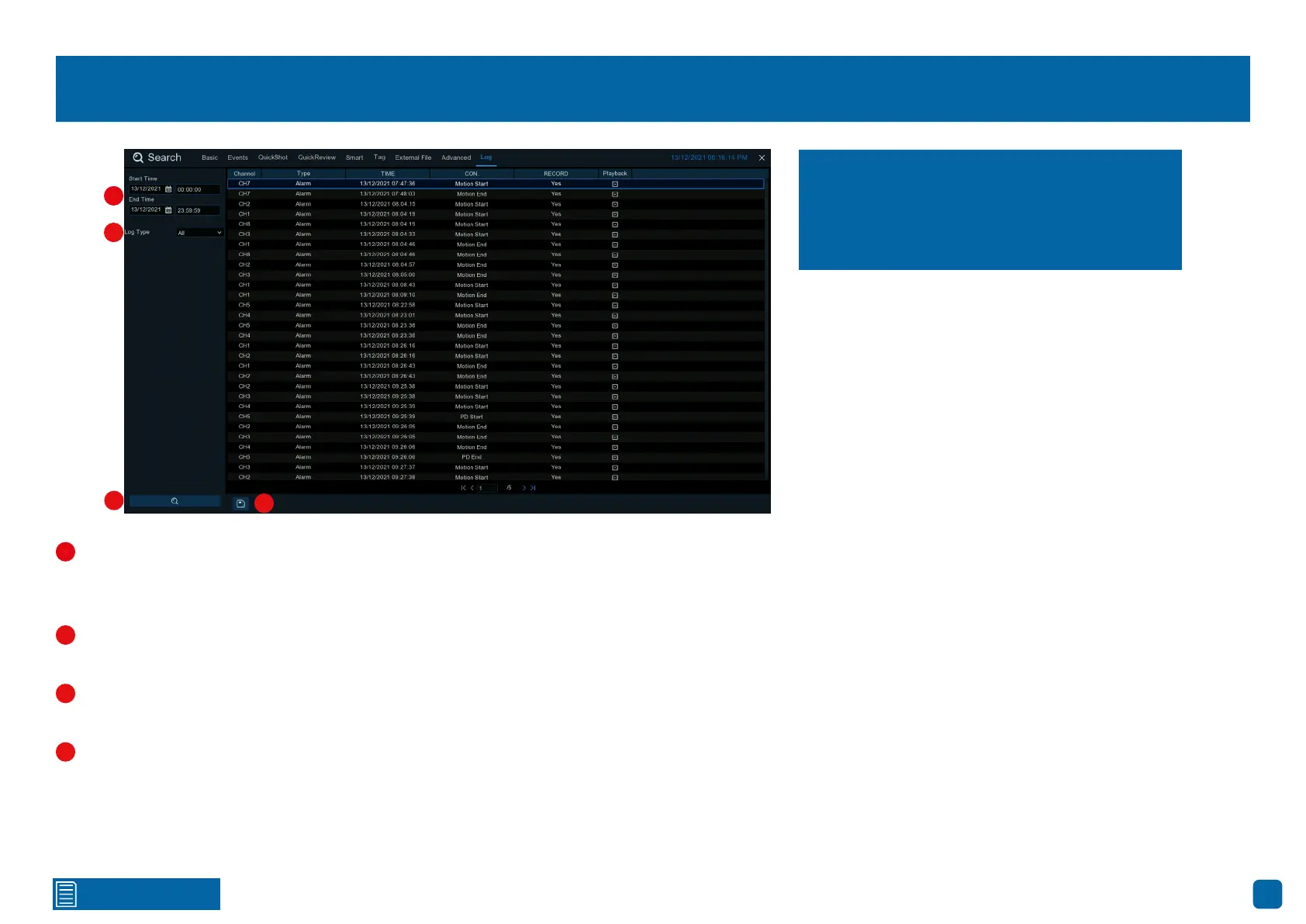 All actions and events that your NVR performs