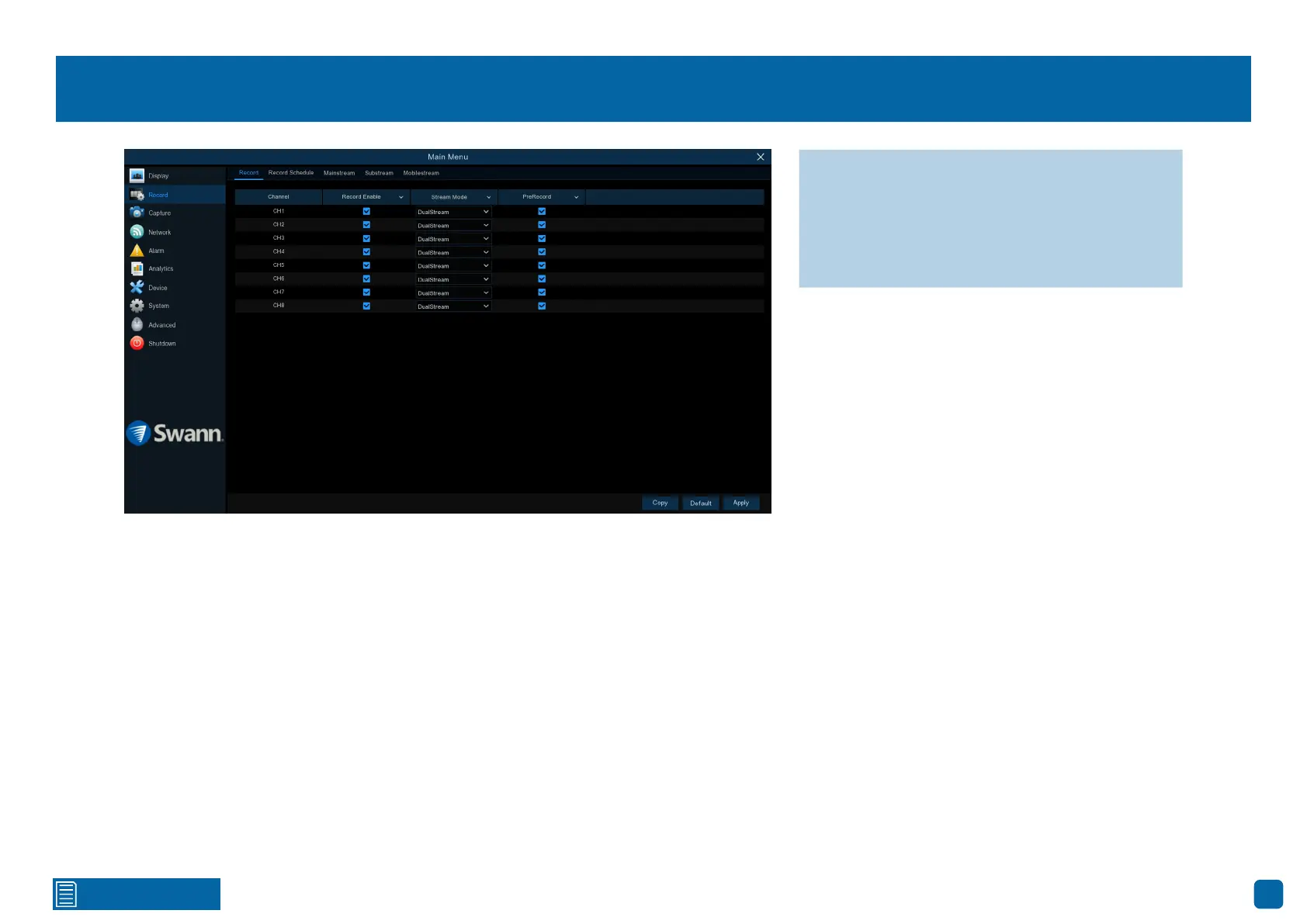 Stream Mode: By default, your NVR will record both Mainstream and Sub-